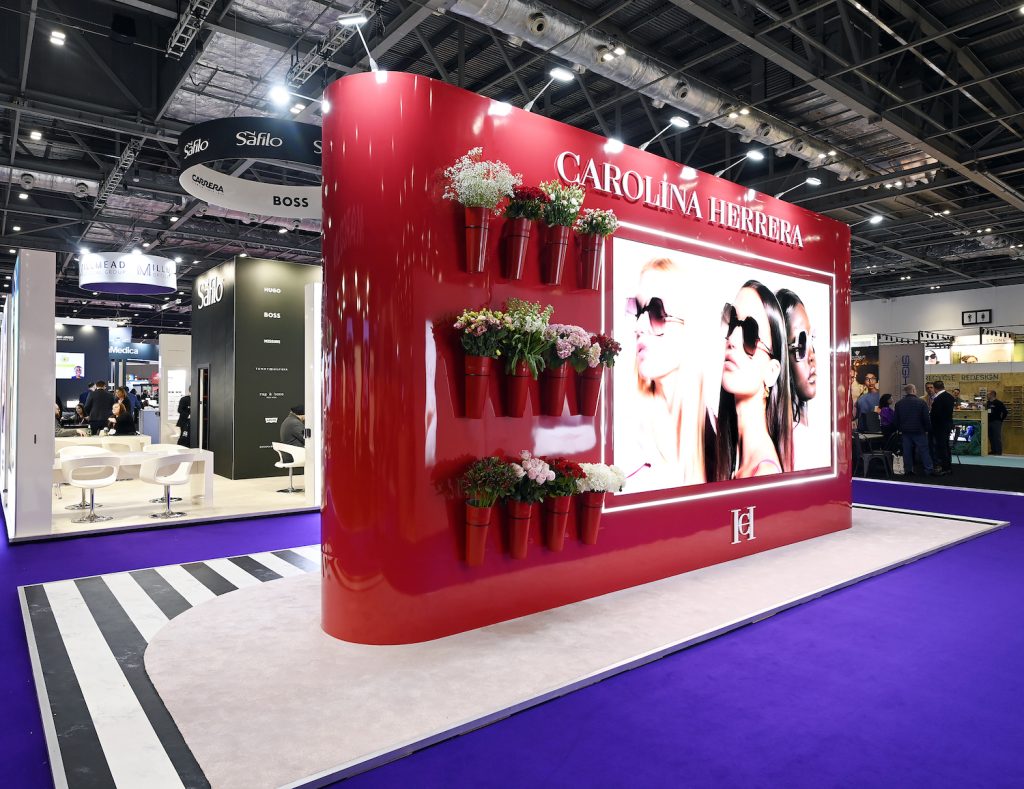 In keeping with their brand ethos, the Carolina Herrera stand exuded quality and sophistication, approaching the show from a different perspective. Picking up on their history of opening high-class pop-up stores and brand activations, the brief was to create a similar experience at 100% Optical.